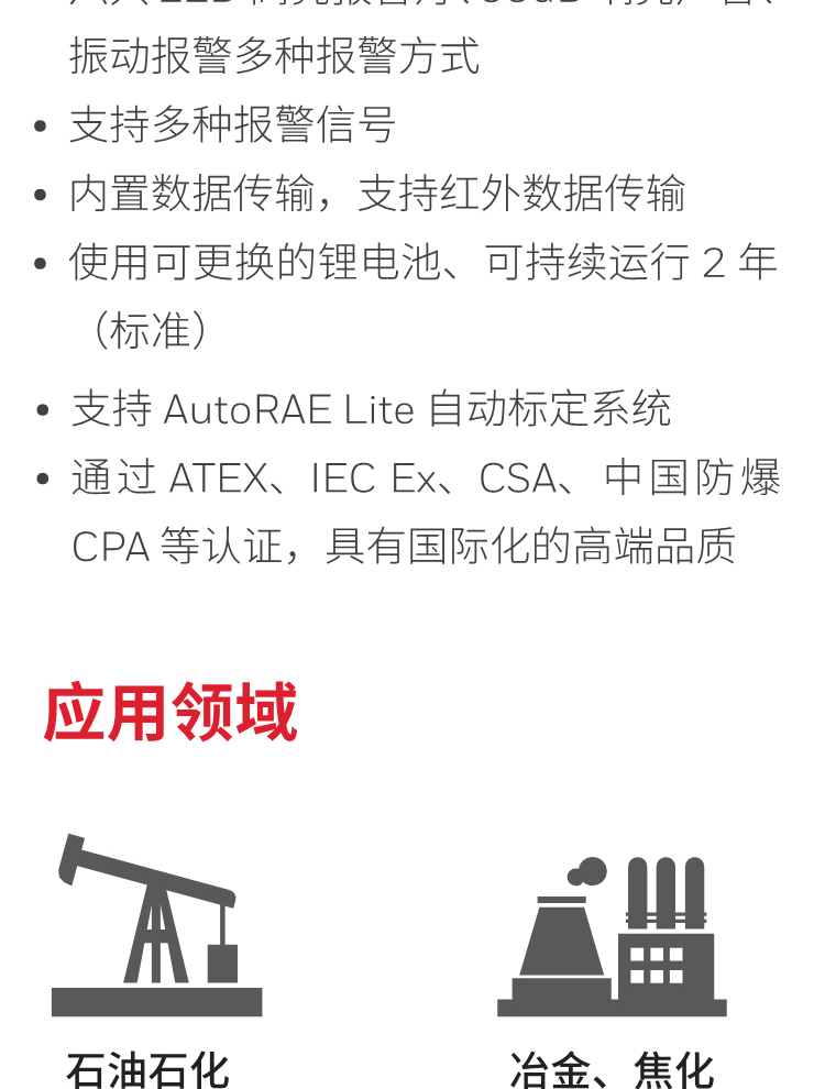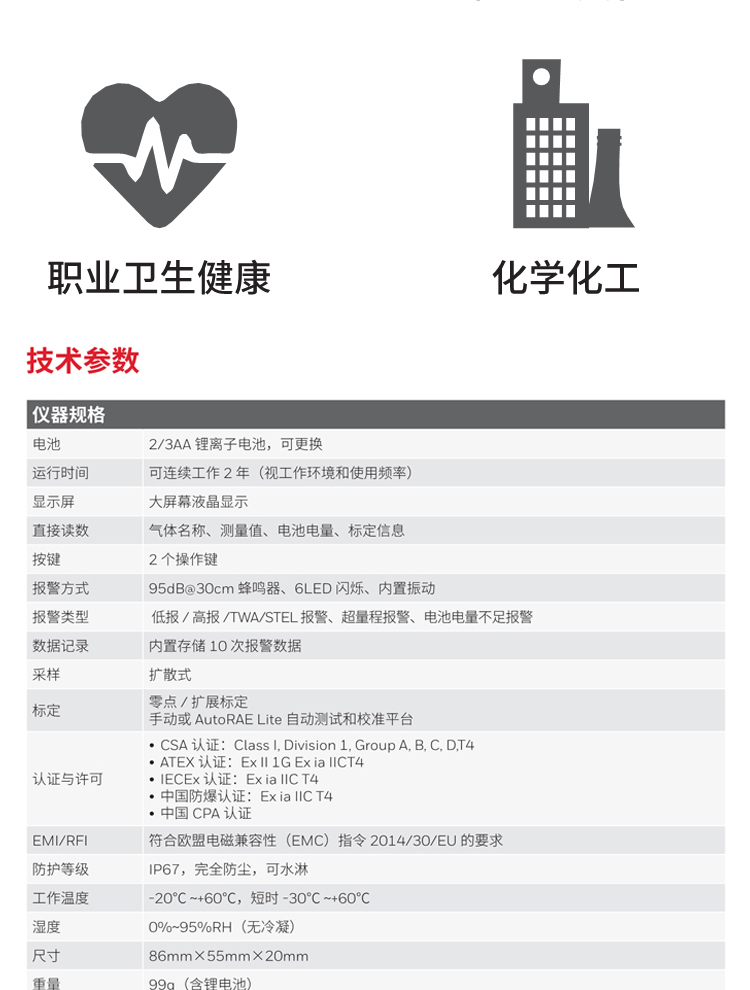 ToxiRAE3單一毒氣檢測儀體積小巧、外形時(shí)尚、性能可靠,除可持續(xù)顯示有毒氣體濃度外,還可顯示STEL值、TWA值、峰值,以及電池剩余壽命、標(biāo)定提示等信息,單獨(dú)設(shè)置高/低濃度和STEL/TWA報(bào)警限值,可用于有毒有害環(huán)境工作人員的防護(hù)。產(chǎn)品外殼選用不銹鋼材料。兩鍵式操作,簡單易用。儀器的標(biāo)定同樣也十分簡便。根據(jù)實(shí)際情況選擇使用或調(diào)整預(yù)設(shè)報(bào)警下限,以滿足個(gè)性化需求??蓮V泛應(yīng)用在鋼鐵冶金、工業(yè)安全等方面。