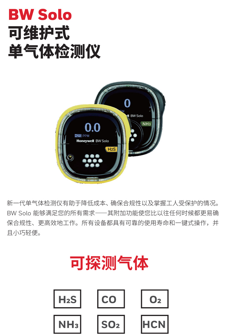 BW solo 可維護式單氣體檢測儀 霍尼韋爾 有毒氣體檢測儀
